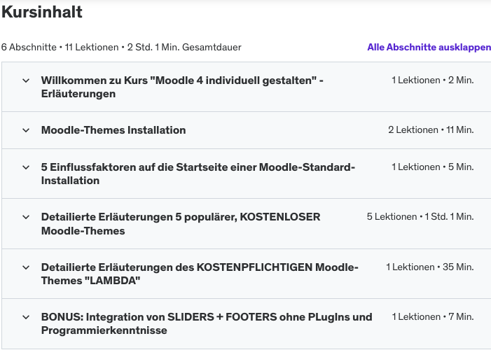 Durchführen aller Einstellungen an 6 populären Moodle-Themes